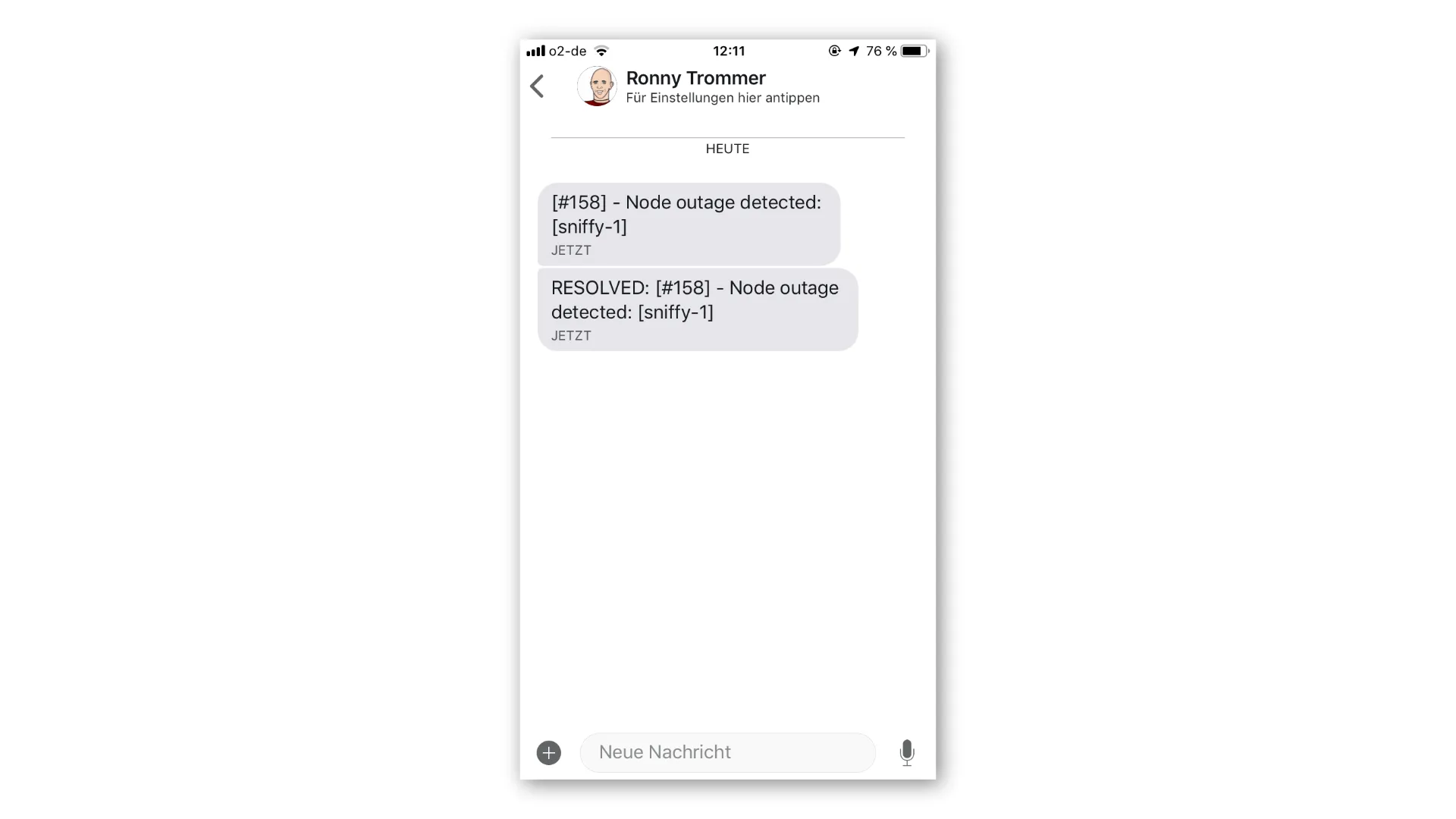Check if you get a notification for a node outage and a resolved message.